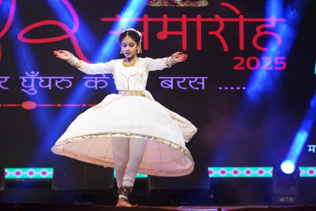 रायगढ़/ अंतरराष्ट्रीय ख्याति प्राप्त चक्रधर समारोह 2025 के पांचवें दिन का मंच तब तालियों की गडग़ड़ाहट से गूंज उठा जब रायपुर की नन्ही नृत्यांगना अन्विता विश्वकर्मा ने लखनऊ घराने की भावपूर्ण एवं सधी हुई प्रस्तुति दी। मात्र 11 वर्ष की आयु में अन्विता ने अपनी अद्भुत नृत्यकला से दर्शकों का मन मोह लिया। उन्होंने पहले उठान, विष्णु वंदना, ठाठ, आमद, बोल-तोड़े एवं परन और कविता रूपी ठुमरी के साथ अंत में तत्कार के प्रकार की प्रस्तुति दी। अन्विता वर्तमान में कक्षा सातवीं की छात्रा हैं और बचपन से ही नृत्य के प्रति विशेष रुचि रखती हैं। उन्होंने मात्र तीन वर्ष की उम्र से नृत्य प्रशिक्षण लेना शुरू किया। लखनऊ घराने से ताल्लुक रखने वाली अन्विता अपनी गुरु अंजनी ठाकुर के मार्गदर्शन में लगातार निखर रही हैं। देश और प्रदेश के कई प्रतिष्ठित मंचों एवं प्रतियोगिताओं में भाग लेकर अन्विता अनेक पुरस्कार जीत चुकी हैं।