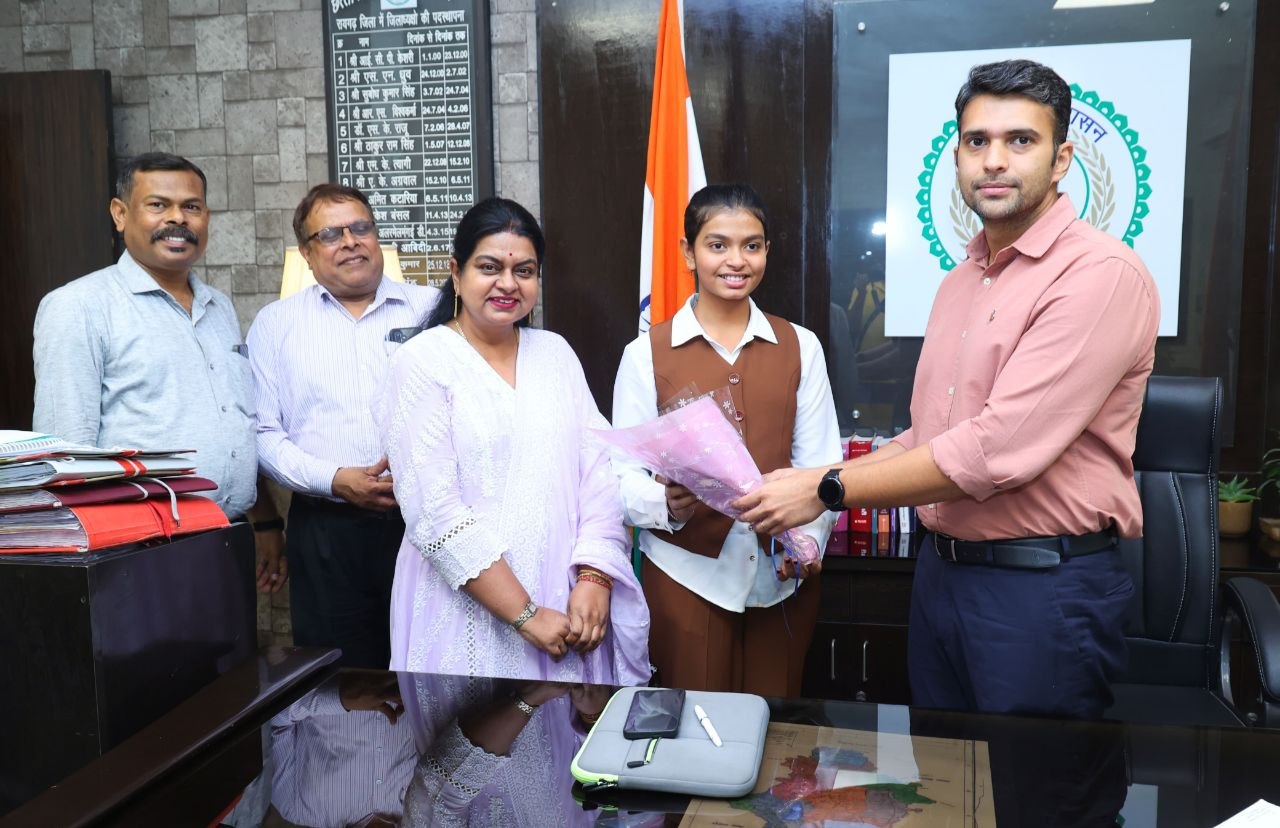 आज जिला कलेक्ट्रेट में कलेक्टर मयंक चतुर्वेदी ने आद्यशा परिडा को अपने चेम्बर में आमंत्रित कर सम्मानित किया और उनकी इस उपलब्धि की सराहना की। इस अवसर पर कलेक्टर ने छात्रा के माता-पिता से भी मुलाकात कर उन्हें बधाई दी तथा उनके सहयोग और मार्गदर्शन की प्रशंसा की।