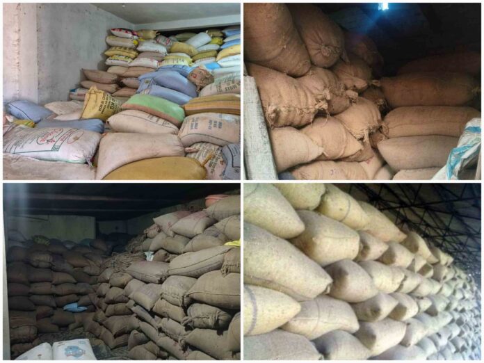 विकासखण्ड रायगढ़ के अंतर्राज्यीय चेक पोस्ट रेंगालपाली में प्रताप साहू ग्राम-भठली चौक तुलसीनगर बरगढ़ उड़ीसा के द्वारा ट्रक क्रमांक ओडी-17 बी 1118 में 180 क्विंटल धान परिवहन करते जब्त किया गया। इसी तरह विकासखण्ड लैलूंगा के अंतर्राज्यीय जमुना चेकपोस्ट में पिकअप वाहन ओडी-16 एलडी 0300 में 60 बोरी धान उड़ीसा बेहरामाल के हरिकृष्ण के परिवहन करते पाए जाने पर जब्ती किया गया। विकासखंड तमनार-बासनपाली वाहन क्रमांक-सीजी 13 एएफ-9053 (माजदा) में 100 बोरी धान मुकेश अग्रवाल, धौराभांठा से जब्त किया गया। विकासखंड खरसिया-डोमनारा में भभीक्षण साव के प्रतिष्ठान से 50 कट्टी अवैध धान जब्त, विकासखण्ड धरमजयगढ़ के ग्राम-उदउदा में कपील यादव से 1200 बोरी धान जब्त, धरमजयगढ़ के ग्राम-हाटी में प्रहलाद अग्रवाल के पास से 900 बोरी धान, विकासखण्ड लैलूंगा के ग्राम-बैसकीमुड़ा में श्री रमेश बेहरा के पास से 150 बोरी धान, विकासखण्ड लैलूंगा के ग्राम-कमरगा में बिहारी लाल गुप्ता के पास 70 बोरी धान भण्डारित पाया गया। इसी तरह विकासखण्ड खरसिया के ग्राम-जोबी मंें जितेन्द्र यादव के पास से 40 बोरी, तमनार के ग्राम-बिजना में माखन गुप्ता से 951 बोरी, तमनार के ग्राम-बिजना में ओमप्रकाश गुप्ता के निवास में अवैध रूप से रखे 70 बोरी धान, खरसिया के काफरमार में वरूण तिवारी के पास 58 बोरी धान, खरसिया के ग्राम-केवाली में गुहादास महंत के पास से 70 बोरी, रायगढ़ के ग्राम साल्हेओना में शिवप्रसाद दीवान के पास से 50 बोरी, पुसौर के अंतर्राज्यीय चेकपोस्ट में परसु साहू के द्वारा 60 बोरी परिवहन करते पाया गया। विकासखण्ड घरघोड़ा के ग्राम-घरघोड़ी में गजेन्द्र यादव के पास 65 बोरी अवैध रूप से रखे भंडारित पाया गया। पुसौर के ग्राम-छिछोरउमरिया में जन्मेजय गुप्ता के 50 बोरी, धरमजयगढ़ के ग्राम-कुड़ेकेला में ़ऋषि अग्रवाल के पास 55 बोरी, पुसौर के ग्राम-ओड़ेकेरा में परमानंद साहू के पास से 20 बोरी धान भंडारित पाया गया। धरमजयगढ़ के बेहरामार में विनोद कुमार बेहरा के पास से 60 बोरी, लैलूंगा के ग्राम-कुंजारा में अमन अग्रवाल के पास से 55 बोरी, धरमजयगढ़ के ग्राम-कटाईपाली सी में मोन्टी अग्रवाल के पास 450 बोरी एवं राजेन्द्र कुमार के जनरल स्टोर में अवैध रूप से रखे 500 बोरी धान जब्त किया गया। धरमजयगढ़ के ग्राम-बाकारुमा में राहू राठिया के पास 60 बोरी धान, लैलूंगा के ग्राम-तोलगे में लक्ष्मण पटेल के पास 739 बोरी, तमनार के ग्राम-भगोरा में उलसन बड़ा के पास के पास से 270 बोरी, तमनार के ग्राम-कुसमेल में मोहितराम के पास 193 बोरी, धरमजयगढ़ में मुकेश अग्रवाल के पास से 250 बोरी धान, धरमजयगढ़ के ग्राम-बोरो में सुशील ढाली के पास अवैध रूप से रखे 120 बोरी धान तथा विकासखण्ड धरमजयगढ़ के ग्राम-पिपराही गोदाम में मुकेश अग्रवाल अधिसूचित कृषि उपज क