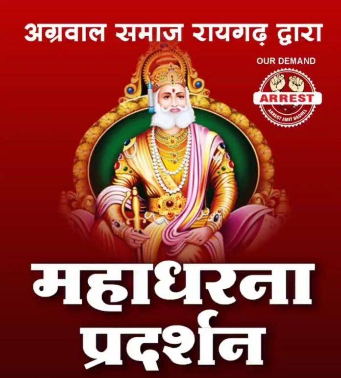रायगढ़। अग्रवाल समाज के आराध्य महाराज अग्रसेन पर अभद्र टिप्पणी करने वाले व्यक्ती अमित बघेल की अब तक गिरफ्तारी न होने से रायगढ़ का अग्र समाज उबाल पर है। समाज के लोगों ने रविवार को अग्रसेन भवन में एक आपात बैठक आयोजित कर पुलिस प्रशासन के निष्क्रिय रवैये पर कड़ी नाराज़गी जताई और आंदोलन को तेज करने का ऐलान किया। अब समाज ने मंगलवार 4 नवंबर को सुबह 11 बजे श्याम टॉकीज के सामने धरना प्रदर्शन करने का निर्णय लिया है।