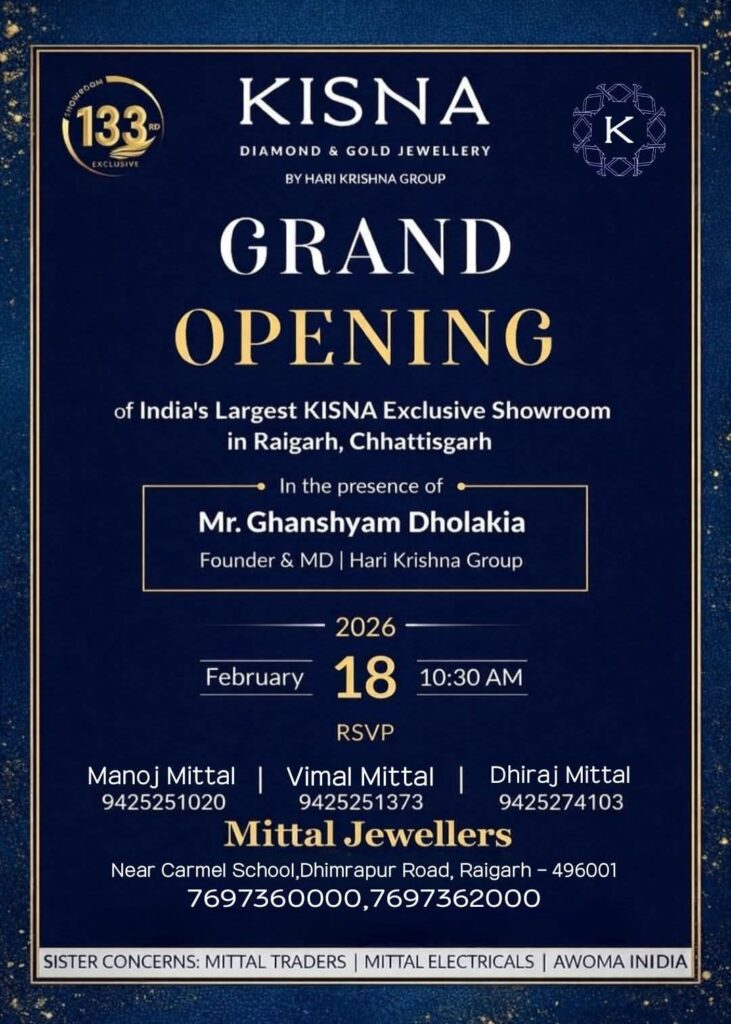 यह आयोजन केवल एक शोरूम उद्घाटन नहीं, बल्कि रायगढ़ के व्यापारिक मानचित्र पर नई चमक जोड़ने वाला महत्वपूर्ण क्षण माना जा रहा है।