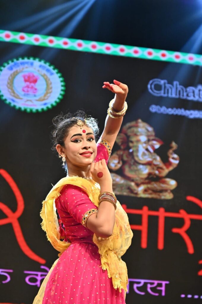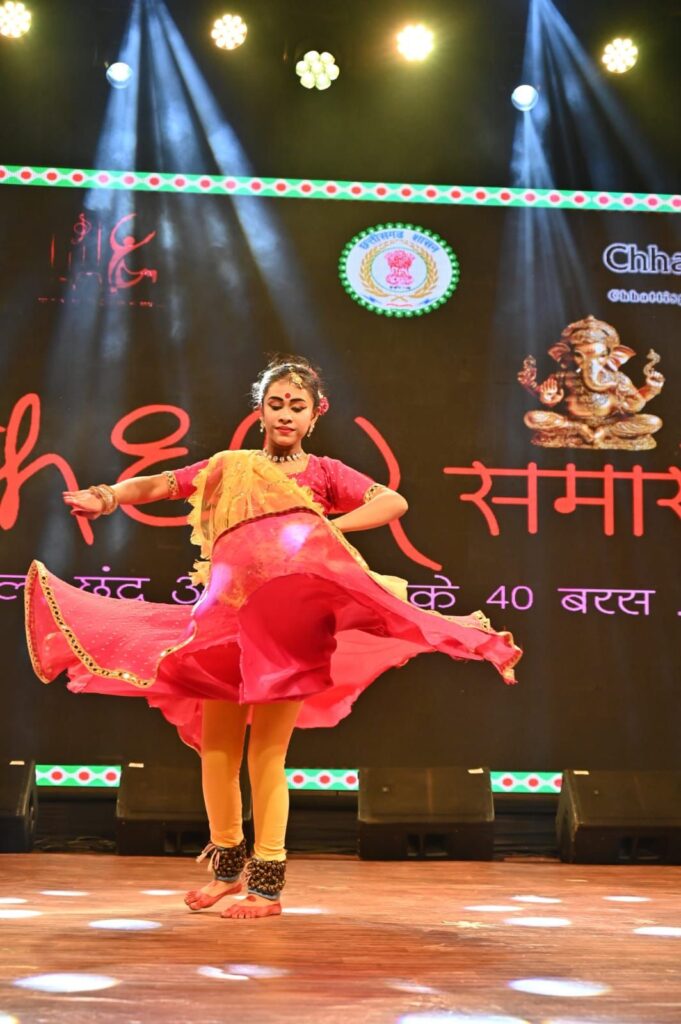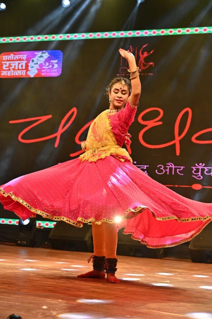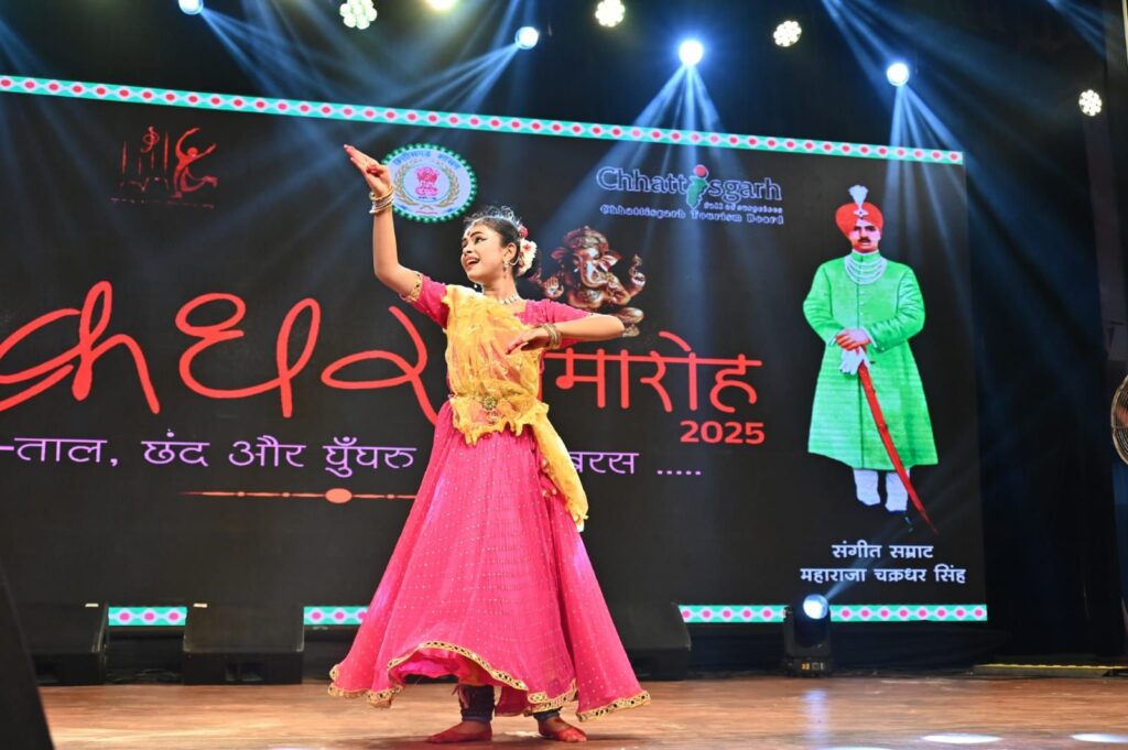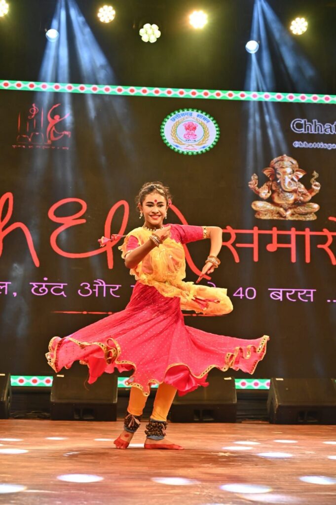 रायगढ़/अंतरराष्ट्रीय ख्याति प्राप्त चक्रधर समारोह 2025 के पांचवें दिन नन्हे कलाकारों ने अपनी कला प्रतिभा से मंच को रोशन कर दिया। कार्यक्रम में बच्चों की प्रस्तुतियों ने जहां दर्शकों को मंत्रमुग्ध किया, वहीं उनकी लय, ताल और भावभंगिमाओं ने कला के प्रति समर्पण को भी दर्शाया। इसी क्रम में कोरबा की कुमारी अश्विका साव ने अपनी शानदार कथक नृत्य प्रस्तुति से दर्शकों का दिल जीत लिया। दक्षिण भारत की इस शास्त्रीय नृत्य शैली में सुर, ताल और लय का ऐसा संगम देखने को मिला।