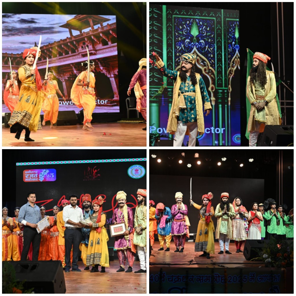 रायगढ़/ अंतर्राष्ट्रीय ख्याति प्राप्त चक्रधर समारोह के तीसरे दिन दर्शकों को नृत्य और संगीत की विविध विधाओं का अद्भुत संगम देखने को मिला। देश-प्रदेश से आए कलाकारों की प्रस्तुतियों ने जहां समारोह की गरिमा को बढ़ाया, वहीं जबलपुर (मध्यप्रदेश) से पहुंचे संस्कार भारती महाकौशल प्रांत की टीम ने अपनी ऐतिहासिक नृत्य नाटिका से दर्शकों के हृदय को गहराई तक छू लिया। नाट्य विधा प्रमुख कमलेश यादव के नेतृत्व में प्रस्तुत “गोंडवाना की वीरांगना रानी दुर्गावती” पर आधारित नृत्य नाटिका समारोह का आकर्षण का केंद्र बनी। मंचन में रानी दुर्गावती के जन्म से लेकर विवाह और मुगल साम्राज्य के विरुद्ध उनके शौर्यपूर्ण संघर्ष को अत्यंत प्रभावशाली ढंग से प्रस्तुत किया गया। वीरांगना की अदम्य साहस, पराक्रम और बलिदान को कलाकारों ने अपनी सजीव भाव-भंगिमाओं और भावपूर्ण संवादों के माध्यम से इस तरह चित्रित किया कि दर्शकगण भाव-विभोर हो उठे। नृत्य, संगीत और नाट्य का अद्भुत संगम इस प्रस्तुति में दिखाई दिया। विशेष रूप से युद्ध के प्रसंग और रानी की वीरता के दृश्यों ने दर्शकों में देशभक्ति और गौरव की भावना का संचार किया।