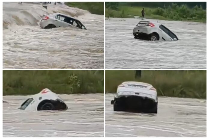 उड़ीसा से आई एक स्विफ्ट कार में महिला समेत तीन लोग सवार थे। चालक ने पहले दो यात्रियों को सुरक्षित जगह तक पहुंचाया। इसके बाद स्वयं कार को पुल पार कराने की कोशिश में जुटा। तेज बहाव के कारण कार पुल पार नहीं कर सकी और नाले में बह गई। यह घटना सरिया थाना क्षेत्र में हुई।