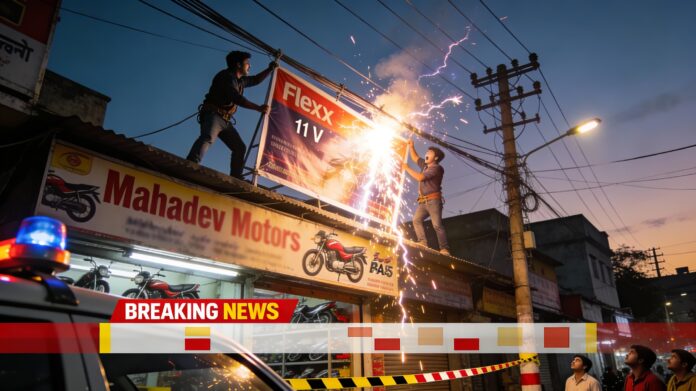 घटना जूटमिल थाना क्षेत्र स्थित ट्रांसपोर्ट नगर के पास की है। छातामुड़ा कबीर चौक निवासी रोहन सिंह (30) और उसका चचेरा भाई दीपक सिंह (22) ‘महादेव मोटर्स’ नाम से दुकान चलाते हैं। गुरुवार शाम दोनों दुकान की छत पर फ्लैक्स लगा रहे थे।