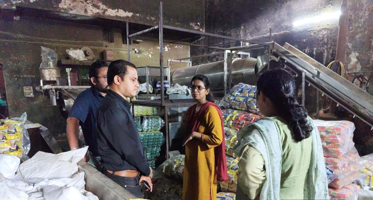 इसी कड़ी में संदेह के आधार पर खाद्य सुरक्षा विभाग की टीम के द्वारा दुर्गा स्वीट्स, इंडस्ट्रीयल एरिया चक्रधर नगर रायगढ़ में निरीक्षण करते हुये कार्न पफ फ्राईस के पैकेट में फटाखा चिपकाकर विनिर्माण करते हुये पाया गया और विक्रय के लिये भण्डारित भी पाया गया। जिसमें कुल 30 बोरियॉ थी, दो बोरी में से नमूना लेकर विश्लेषण हेतु राज्य खाद्य परीक्षण प्रयोगशाला, रायपुर प्रेषित किया गया। 28 बोरियों को संचालक की अभिरक्षा में रखा गया है। 18000 रुपए लगभग का माल सीज किया गया है। साथ ही लेबल भी नहीं पाया गया तथा लाईसेंस नम्बर जो लेबल में डला है वो वैलिड नहीं है।