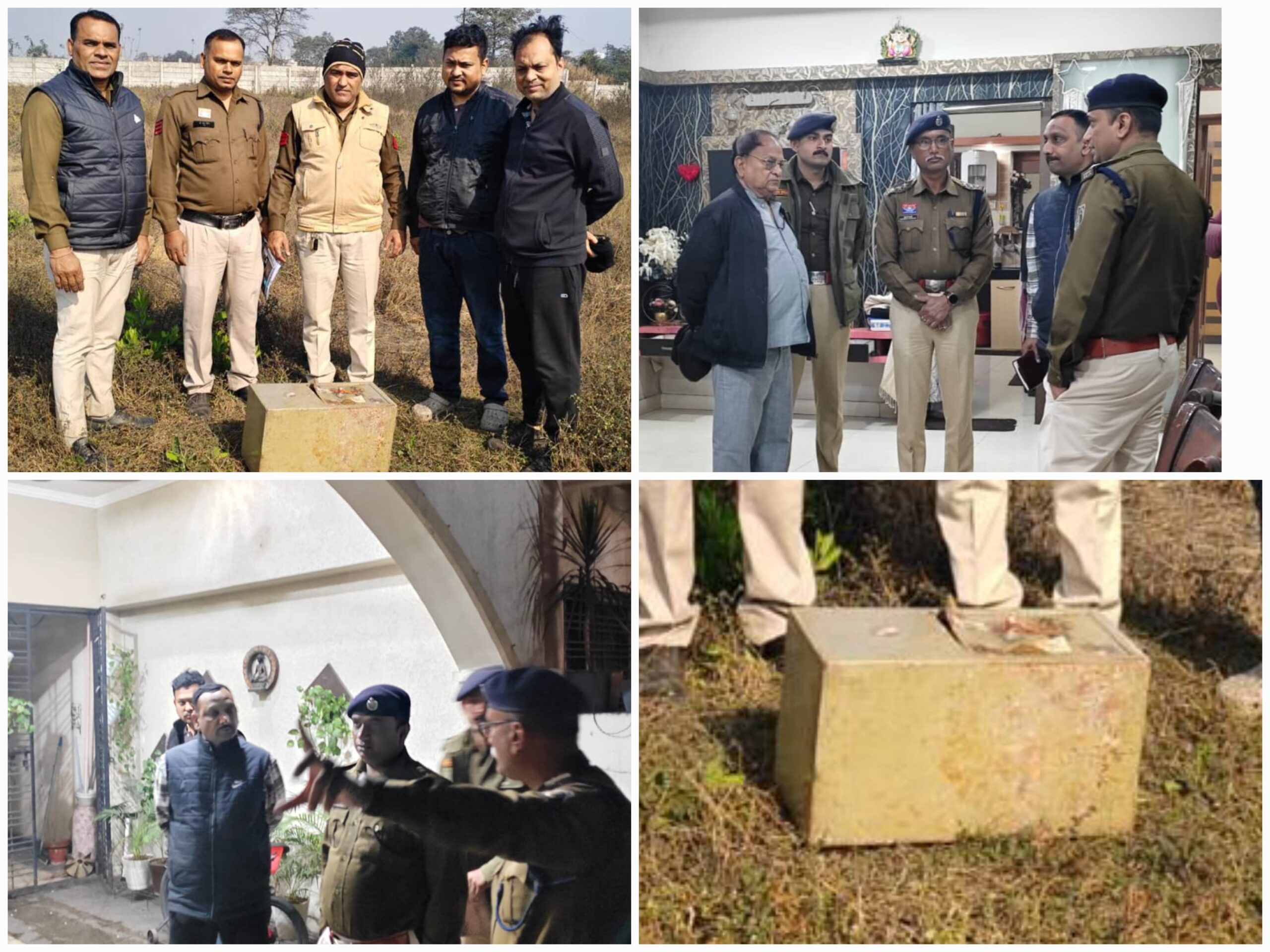 सर्च के दौरान न्यू अग्रोहा धाम भवन के पीछे झाड़ियों में चोरी गई तिजोरी बंद हालत में बरामद की गई। इसके बाद प्रार्थी आलोक अग्रवाल एवं उनके घरवालों की उपस्थिति में तिजोरी खुलवाकर विधि अनुसार पंचनामा कार्यवाही की गई, जिसमें तिजोरी में रखें शत-प्रतिशत सोने-चांदी के जेवरात एवं नगद राशि बरामद हुई है।