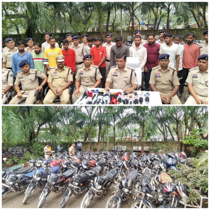 रायगढ़। रायगढ़ एसपी दिव्यांग कुमार पटेल के कुशल नेतृत्व में रायगढ़ पुलिस को बाइक चोरी करने वाले संगठित गिरोह का भंडाफोड़ करने में बड़ी सफलता हाथ लगी है, एसपी रायगढ़ द्वारा गठित साइबर सेल और विभिन्न स्थानों की विशेष टीम ने बाइक चोर राजा खान समेत 18 आरोपियों को गिरफ्तार किया है आरोपियों से चोरी की 52 दुपहिया वाहन जप्त की गई है जिनका वर्तमान में बाजार मूल्य 40 लाख रुपए से अधिक है ।