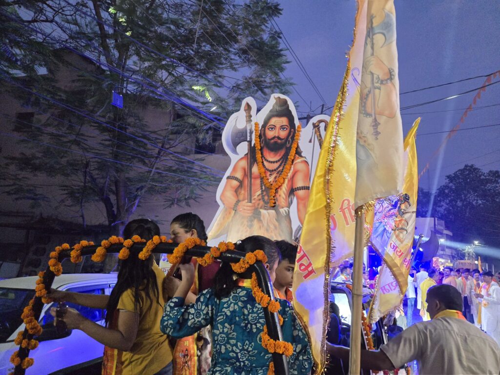 भगवान परशुराम जी की शोभायात्रा शहर के प्रमुख मार्गों और चौराहों से गुजरती हुई निकली, जिसमें सजीव झांकियाँ, पारंपरिक वाद्ययंत्रों की मधुर ध्वनि और कर्मा नृत्य ने जनमानस का मन मोह लिया। भगवान परशुराम की जीवंत झांकी विशेष आकर्षण का केंद्र रही, जिसमें उनके शौर्य और तप की झलक दिखाई गई।
