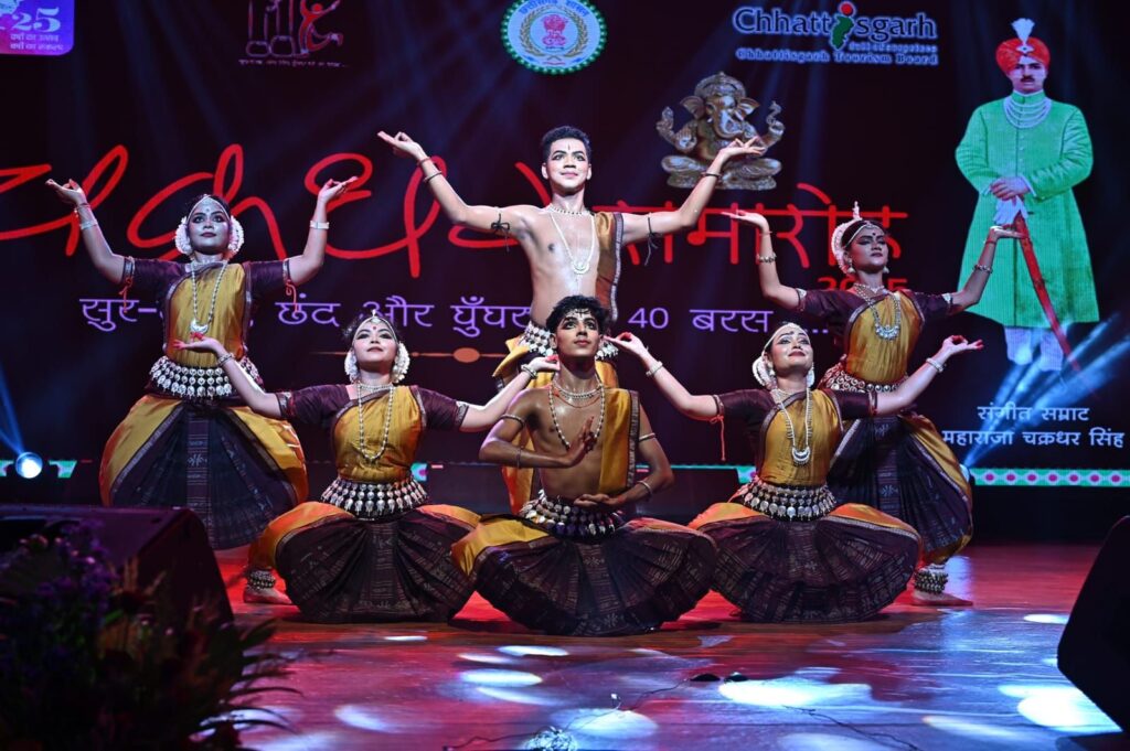 नृत्य की बारीक मुद्राएँ, सूक्ष्म भाव-भंगिमाएँ और मंचीय तालमेल ने कला और भक्ति का ऐसा अनूठा समागम रचा, जिसे देखकर हर किसी के हृदय में भक्ति उमड़ पड़ी। इस अनुपम प्रस्तुति में डॉ. दीप्ति राउतरे के साथ शीतल स्वैन, आकांक्षा राउतरे, बिद्यांशी भट्टा, स्मिता मोहना, रीना बाला लेंका, पल्लवी प्रासफुटिटा, राकेश दास और अंकित साहा शामिल रहे। सामूहिक नृत्य में उनके लयबद्ध तालमेल और सौंदर्यपूर्ण गतियों ने कार्यक्रम को अविस्मरणीय बना दिया। ओड़िशी नृत्य की इस विशिष्ट प्रस्तुति ने न केवल दर्शकों को मंत्रमुग्ध किया, बल्कि चक्रधर समारोह की गरिमा और भी बढ़ा दी।