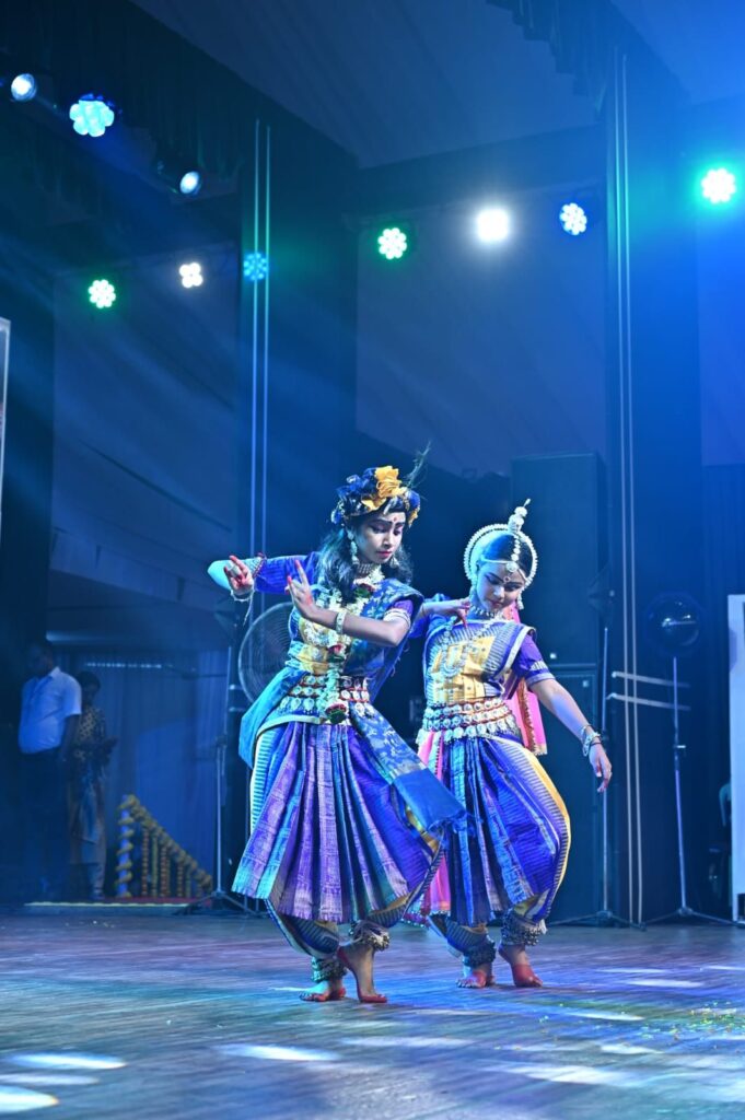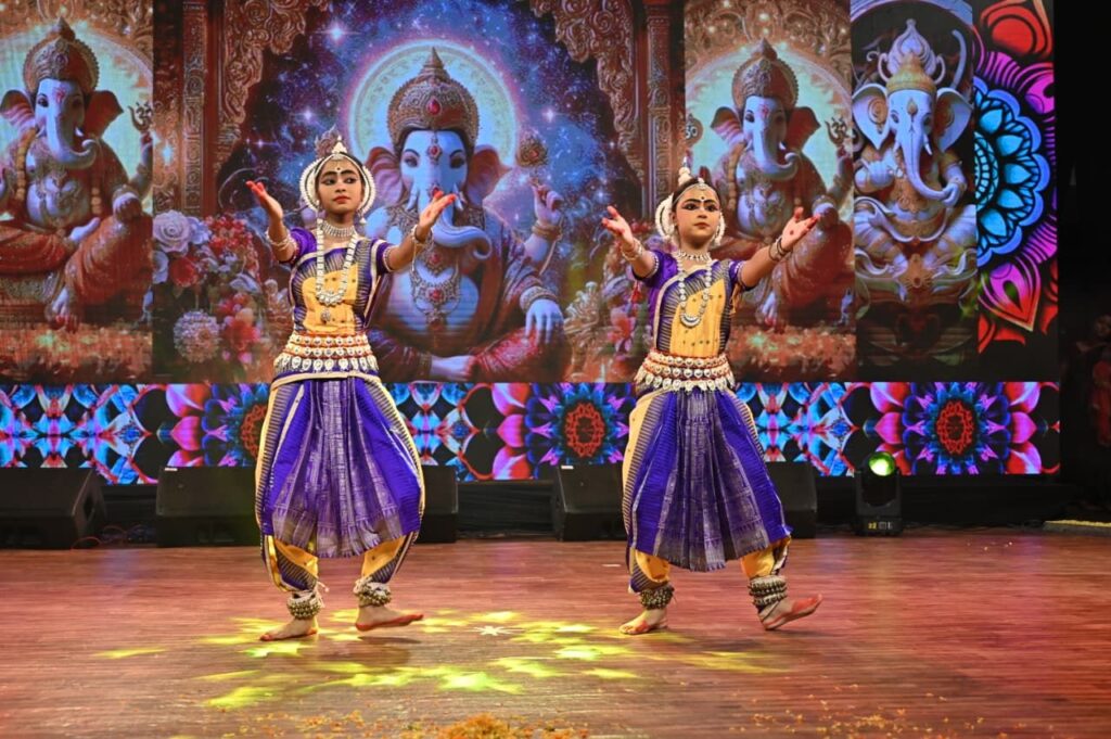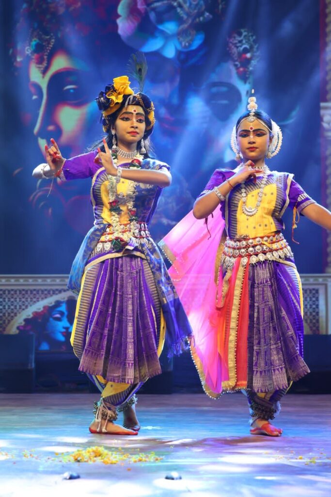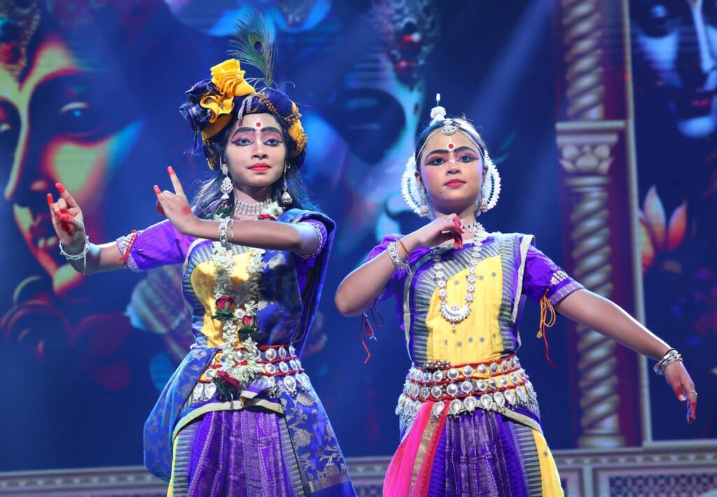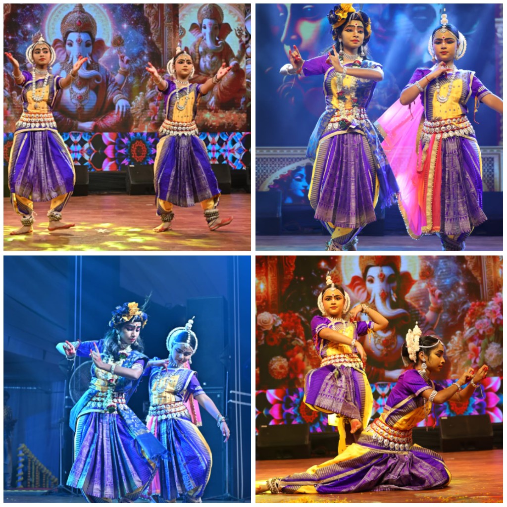 ओडिसी नृत्य की प्राचीन शैली को जीवंत करते हुए कलाकाराओं ने भगवान गणेश , राधा-रानी संग नाचे मुरली पर आधारित भावपूर्ण आकर्षक प्रस्तुति दी। अंग-संचालन, मुख-मुद्राएँ और पदचालन की सुंदर लयबद्धता ने दर्शकों को ओडिसा की सांस्कृतिक विरासत की झलक दिखाई। संगीत और वाद्य-ताल के साथ जब दोनों ने मंच पर नृत्य किया, तो वातावरण में भक्ति और सौंदर्य का अद्भुत संगम देखने को मिला।