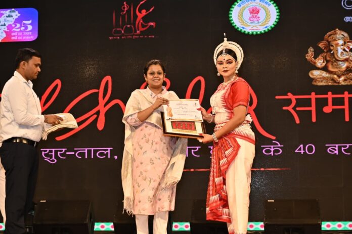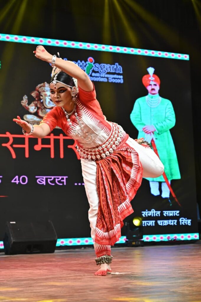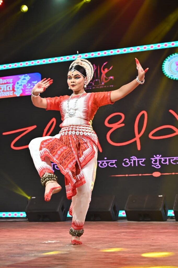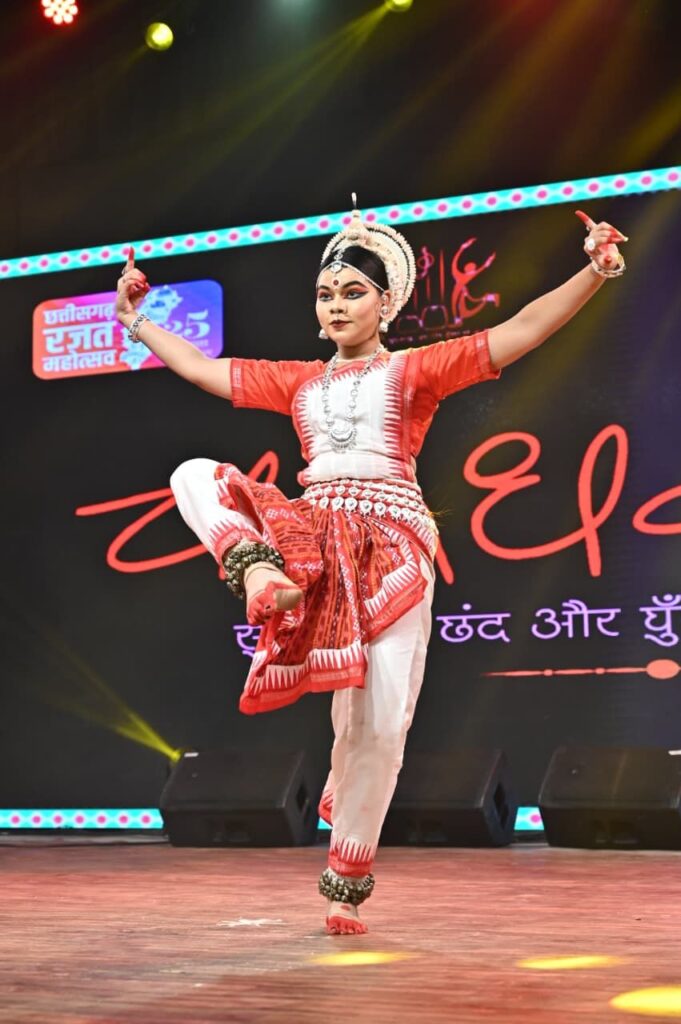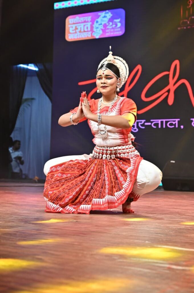 रायगढ़/ चक्रधर समारोह 2025 के मंच पर रायगढ़ की युवा कलाकार हीना दास ने ओडिसी नृत्य प्रस्तुत किया। बचपन से ही इस विधा का अभ्यास कर रहीं हीना वर्तमान में इंदिरा कला संगीत विश्वविद्यालय, खैरागढ़ से उच्च शिक्षा प्राप्त कर रही हैं। उन्होंने इंटरनेशनल ओडिसी डांस फेस्टिवल, खैरागढ़ महोत्सव, मैनपाट महोत्सव और देवदासी नृत्यांजली महोत्सव जैसे कई राष्ट्रीय-अंतर्राष्ट्रीय मंचों पर अपनी प्रस्तुतियां देकर ख्याति अर्जित की है। साथ ही उन्हें मथुराराज नृत्यश्री सम्मान, कट्टक नवीन कला सम्मान और नृत्यांजली भुवनेश्वर सम्मान से अलंकृत किया जा चुका है।