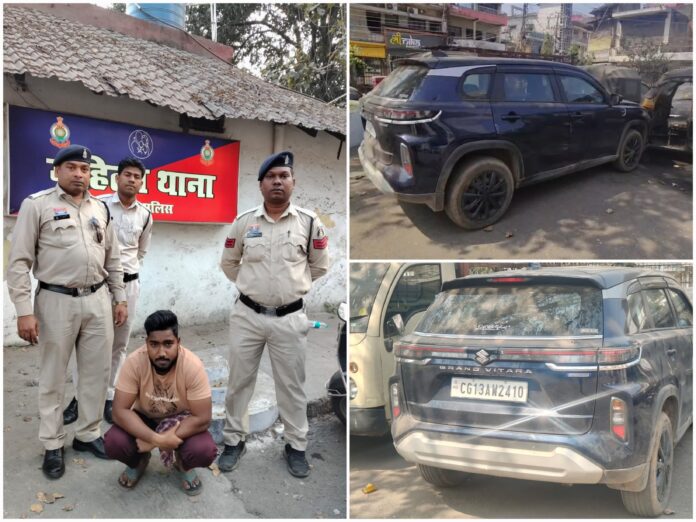 रायगढ़। दिनांक 09.02.2026 की रात्रि चांदमारी रोड पर कार सवार दो युवतियों के साथ छेड़खानी की गंभीर घटना पर वरिष्ठ पुलिस अधीक्षक श्री शशि मोहन सिंह के दिशा-निर्देशन में महिला थाना पुलिस ने त्वरित कार्रवाई करते हुए एक आरोपी को गिरफ्तार कर न्यायिक रिमांड पर जेल भेज दिया है। घटना में प्रयुक्त ग्रैंड विटारा कार क्रमांक CG13 AW 2410 को भी जप्त किया गया है। मामले में शामिल अन्य चार आरोपी गिरफ्तारी के भय से फरार हैं, जिनकी सघन पतासाजी जारी है।