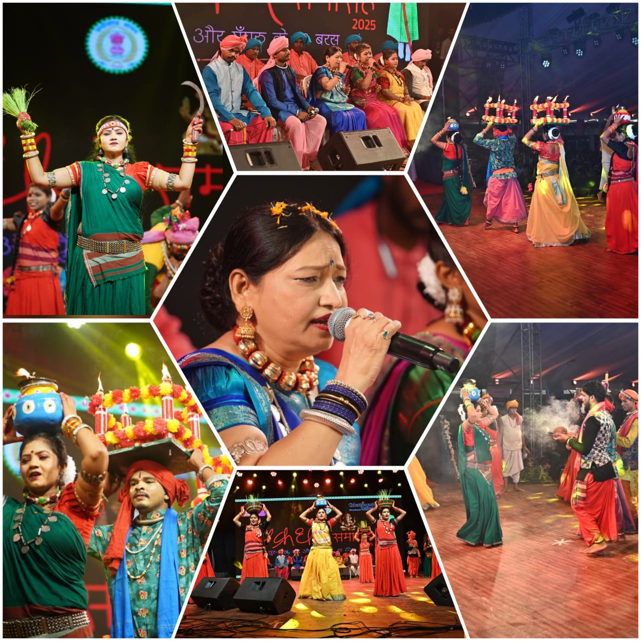 लोकपरंपराओं की झलक पेश करते हुए हरेली, भोजली, गौरी-गौरा, राउत नाचा, डंडा नृत्य, सुआ नृत्य, देवार गीत, पंथी गीत, छेरछेरा और जंवारा विसर्जन जैसी प्रस्तुतियों ने वातावरण को छत्तीसगढ़ के समृद्ध संस्कृति की खुशबू से महकाया। अंत में उन्होंने छत्तीसगढ़ के लोकप्रिय गीत कर्मा और छत्तीसगढ़ी गीतों की प्रस्तुति देकर कार्यक्रम को नई ऊंचाई दी।
