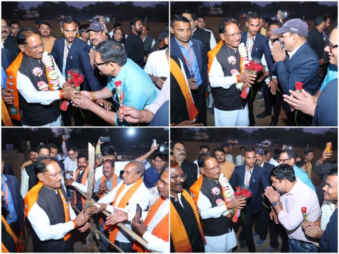 रायगढ़। मुख्यमंत्री श्री विष्णुदेव साय आज रायगढ़ जिले के प्रवास पर पहुंचे। शहर के डिग्री कॉलेज स्थित लाल मैदान में उनके आगमन पर जनप्रतिनिधियों, प्रशासनिक अधिकारियों और नागरिकों ने गर्मजोशी से स्वागत किया।