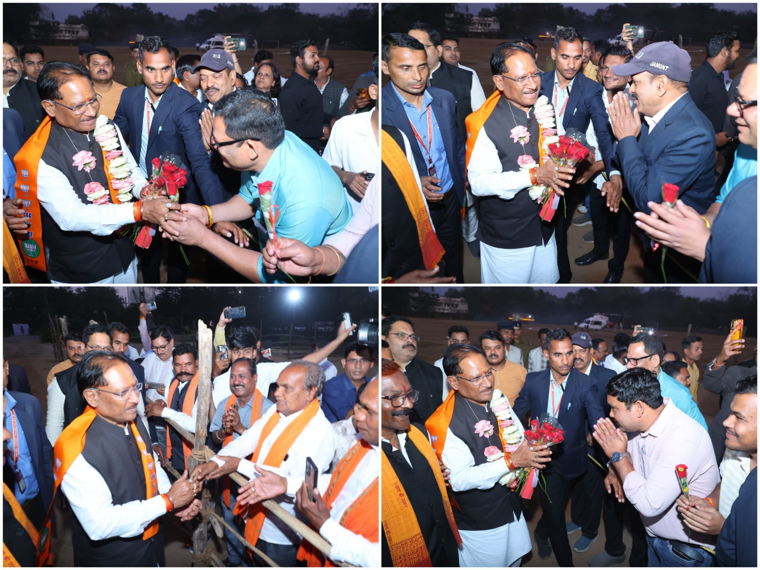 लाल मैदान पहुंचने पर नगर निगम महापौर श्री जीवर्धन चौहान, सभापति श्री डिग्रीलाल साहू, श्री अरुणधर दीवान, पूर्व विधायक श्री विजय अग्रवाल, श्री गुरुपाल भल्ला, श्री सुभाष पाण्डेय, श्री विजय केडिया, श्री कौशलेष मिश्रा, श्री पवन शर्मा सहित स्थानीय जनप्रतिनिधियों और गणमान्य नागरिकों ने मुख्यमंत्री का पुष्पगुच्छ भेंट कर आत्मीय अभिनंदन किया। इस अवसर पर कलेक्टर श्री मयंक चतुर्वेदी, वरिष्ठ पुलिस अधीक्षक श्री शशिमोहन सिंह, जिला पंचायत सीईओ श्री अभिजीत बबन पठारे तथा नगर निगम आयुक्त श्री बृजेश सिंह क्षत्रिय सहित अन्य अधिकारी उपस्थित रहे।