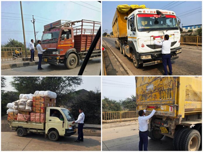 📢 राष्ट्रीय सड़क सुरक्षा माह 2026 के तहत पुलिस अधीक्षक श्री दिव्यांग कुमार पटेल के दिशा-निर्देशन एवं ट्रैफिक डीएसपी श्री उत्तम प्रताप सिंह के मार्गदर्शन में यातायात पुलिस रायगढ़ द्वारा यातायात जागरूकता को लेकर लगातार विधिक जागरूकता कार्यक्रम आयोजित किए जा रहे हैं। इसी क्रम में सड़क दुर्घटनाओं की रोकथाम के उद्देश्य से यातायात पुलिस द्वारा भारी वाहनों तथा सभी प्रकार के मालवाहक वाहनों पर रेडियम पट्टी लगाए जाने की कार्रवाई भी की जा रही है।