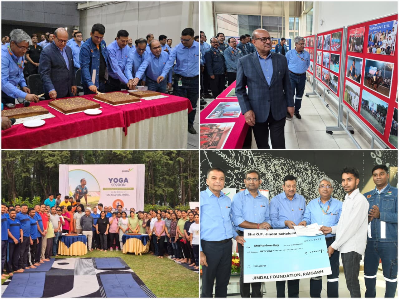 रायगढ़। जिंदल स्टील लिमिटेड के चेयरमैन एवं लोकसभा सांसद नवीन जिंदल का जन्मदिन रायगढ़ में उत्साह, सेवा और सामाजिक सरोकारों के साथ मनाया गया। इस अवसर पर संयंत्र परिसर सहित आसपास के गांवों और शहर में दिनभर विभिन्न कार्यक्रम आयोजित किए गए। सुबह योग सत्र से शुरू हुआ कार्यक्रमों का सिलसिला देर शाम तक चलता रहा, जिसमें हजारों लोगों ने उत्साहपूर्वक भाग लिया। इस मौके पर जिंदल फाउंडेशन द्वारा आसपास के गांवों के 50 मेधावी विद्यार्थियों को ओपी जिंदल छात्रवृत्ति प्रदान की गई। वहीं शहर और आसपास के कई वृद्धाश्रमों, अनाथालयों और सेवा संस्थानों में जरूरत की सामग्री उपलब्ध कराते हुए केक काटकर और भोजन वितरित कर जन्मदिन की खुशियां साझा की गईं। सुबह 6:30 बजे संयंत्र परिसर स्थित एयरस्ट्रिप लॉन में विशेष योग सत्र के साथ कार्यक्रमों की शुरुआत हुई। इस सत्र में कार्यपालन निदेशक देबोज्योति रॉय सहित बड़ी संख्या में अधिकारी-कर्मचारियों और उनके परिवार के सदस्यों ने हिस्सा लिया। योग प्रशिक्षक ने अनुलोम-विलोम, कपालभाति, भस्त्रिका, प्राणायाम और सूर्य नमस्कार सहित विभिन्न योगासन कराए। सत्र के अंत में कार्यपालन निदेशक श्री रॉय ने रायगढ़ टीम की ओर से नवीन जिंदल को जन्मदिन की शुभकामनाएं देते हुए कहा कि जीवन के विभिन्न क्षेत्रों में उनकी उपलब्धियां सभी के लिए प्रेरणास्रोत हैं। इसके बाद उपस्थित लोगों ने केक काटकर जन्मदिन की खुशियां मनाईं। इस अवसर पर जिंदल सेंटर में श्री जिंदल के जीवन से जुड़ी तस्वीरों की विशेष प्रदर्शनी भी लगाई गई। सुबह 10 बजे कंपनी के वाइस चेयरमैन वी.आर. शर्मा ने इसका उद्घाटन किया। प्रदर्शनी में एक उद्योगपति, समाजसेवी, राजनेता और खिलाड़ी के रूप में उनकी जीवन यात्रा के महत्वपूर्ण क्षणों को दर्शाती तस्वीरें प्रदर्शित की गईं। सुबह 11 बजे विशेष बच्चों के केंद्र जिंदल आशा में भी जन्मदिन मनाया गया। वहीं दोपहर में संयंत्र के कर्मचारियों के लिए भोजन की व्यवस्था की गई।