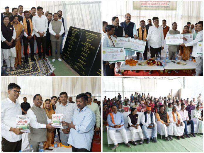 कार्यक्रम के दौरान विभागीय योजनाओं के अंतर्गत 15 हितग्राहियों को सामग्री एवं चेक का वितरण किया गया। कार्यक्रम के दौरान कृषक संगोष्ठी का आयोजन भी किया गया, जिसमें किसानों को उन्नत कृषि पद्धतियों, आधुनिक तकनीक और सरकारी योजनाओं की जानकारी दी गई।इस अवसर पर कृषक प्रतिनिधि श्री आमोद नायक एवं श्री माधव साव द्वारा प्रभारी मंत्री को जैविक जवाफूल चावल भेंट किया गया। इस अवसर पर नगर निगम महापौर जीवर्धन चौहान, सभापति डिग्रीलाल साहू, जनपद पंचायत पुसौर अध्यक्ष हेमलता चौहान, अरुण धर दीवान, अभिषेक शुक्ला उमेश अग्रवाल, विकास केडिया, कलेक्टर मयंक चतुर्वेदी, पुलिस अधीक्षक दिव्यांग पटेल, जिला पंचायत सीईओ अभिजीत बबन पठारे, एसडीएम महेश शर्मा सहित संबंधित अधिकारी-कर्मचारी, जनप्रतिनिधिगण एवं बड़ी संख्या में कृषक उपस्थित रहे।