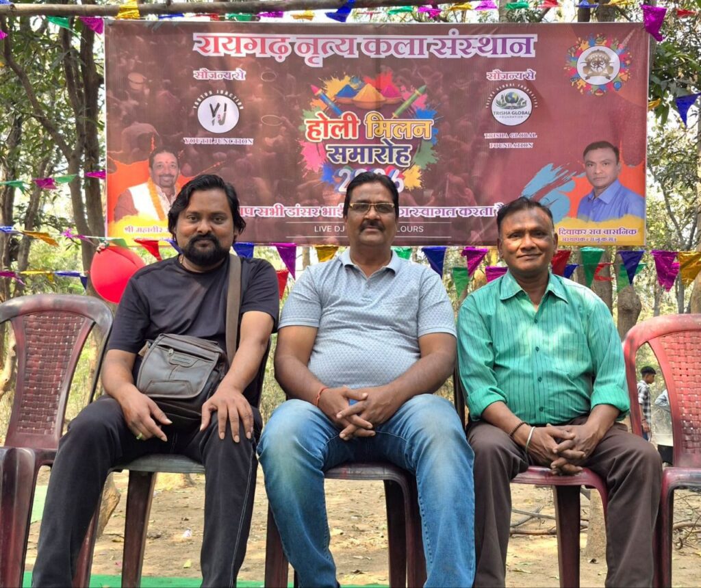 रायगढ़ । रायगढ़ नृत्य कला संस्थान द्वारा स्थानीय इंदिरा विहार उद्यान में होली मिलन समारोह एवं नव-निर्वाचित पदाधिकारियों का शपथ ग्रहण कार्यक्रम गरिमामय वातावरण में संपन्न हुआ। कार्यक्रम में रंगों के पावन पर्व होली की उमंग के साथ सांस्कृतिक एकता और कला के प्रति समर्पण का सुंदर संगम देखने को मिला। उक्त कार्यक्रम की  अध्यक्षता संस्था के संस्थापक दिवाकर राव वासनिक जी ने की। मंच संचालन रायगढ़ के मशहूर कोरियोग्राफर, एल्बम सिंगर, गीतकार एवं अभिनेता, संस्था के पूर्व अध्यक्ष हेमंत महंत एवं पूर्व सह सचिव सम्पत चौहान द्वारा प्रभावी एवं रोचक शैली में किया गया।