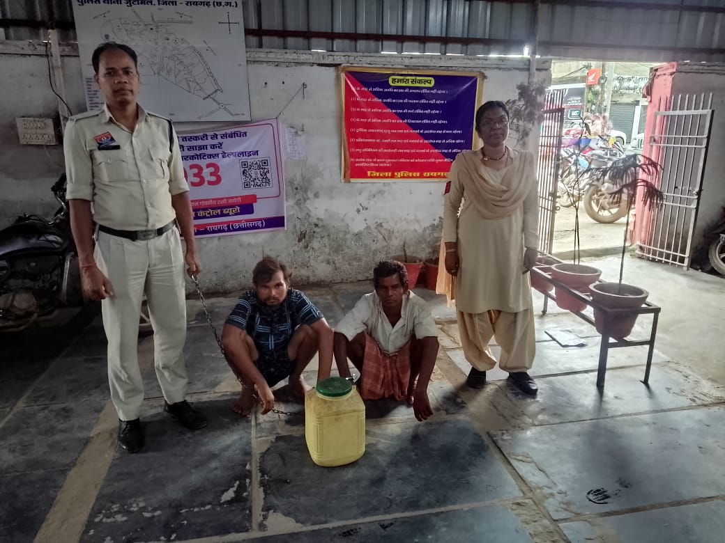 रायगढ़। जिले में अवैध शराब के खिलाफ चलाए जा रहे अभियान के तहत जूटमिल पुलिस को आज बड़ी सफलता मिली है। थाना प्रभारी निरीक्षक प्रशांत राव के नेतृत्व में ग्राम भाठनपाली में दबिश देकर दो व्यक्तियों को हाथ भट्ठी की बनी महुआ शराब के साथ रंगे हाथों पकड़ा गया।