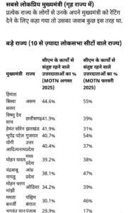 Mood of the Nation Survey में दर्ज आंकड़े यह भी स्पष्ट करते हैं कि छत्तीसगढ़ के लोग मुख्यमंत्री श्री साय के नेतृत्व को विकास और स्थिरता की गारंटी मान रहे हैं। 41.9 प्रतिशत संतुष्टि दर का अर्थ है कि हर दो में से एक नागरिक राज्य सरकार के कामकाज से संतुष्ट है। बड़े राज्यों में दूसरा स्थान इस बात की पुष्टि करता है कि छत्तीसगढ़ राष्ट्रीय पटल पर एक मजबूत और उभरते हुए राज्य के रूप में स्थापित हो रहा है।