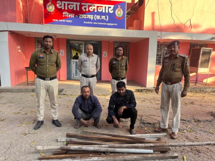 रायगढ़। एसएसपी शशि मोहन सिंह के दिशा निर्देशन में जिले में चोरी की घटनाओं पर अंकुश लगाने मोटर सायकल चोरों, कबाड़ चोरों एवं अवैध रूप से कबाड़ खरीदी करने वालों पर सतत निगरानी रखकर प्रभावी कार्रवाई की जा रही है। इसी क्रम में कल थाना तमनार पुलिस द्वारा लोहा चोरी के मामले में त्वरित कार्रवाई करते हुए दो आरोपियों को गिरफ्तार कर न्यायिक रिमांड पर भेजा गया है।