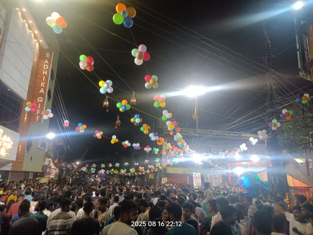 जन्माष्टमी की इस भव्य छटा ने न सिर्फ भक्तों को भक्ति में सराबोर किया बल्कि रायगढ़ शहर को देर रात तक जीवंत और उत्सवमय बना दिया।