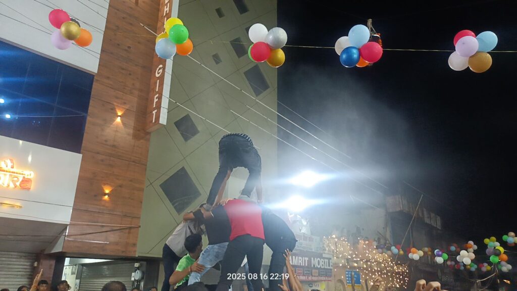 सुभाष चौक, स्टेशन चौक और हंडी चौक पर दही-हांडी उत्सव खास आकर्षण का केंद्र रहे। सजावट, लाइटिंग और डीजे की धुन पर नाचते-गाते भक्तों की भीड़ देर रात तक जमी रही। रंग-बिरंगी झालरों और रोशनी से सजे चौक मानो किसी पर्व सरीखे आलोकित हो उठे।