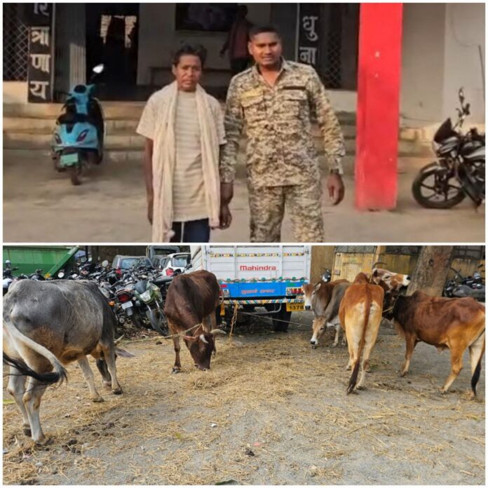 🚨 मवेशियों को मारपीट कर बिना चारा-पानी उड़ीसा ले जाया जा रहा था आरोपी….