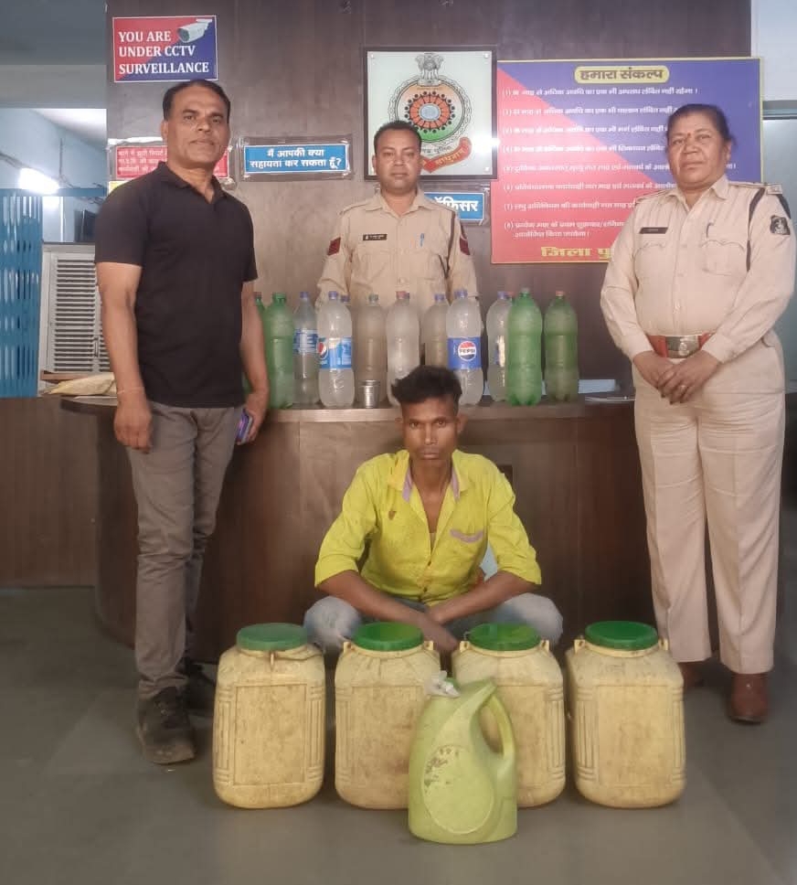 छापेमारी में ईट के ढेर में छुपा कर रखी हुई अवैध शराब एक के बीच आरोपी के कब्जे से प्लास्टिक जरीकिन और प्लास्टिक बोतलों में भरी कुल 96 लीटर महुआ शराब बरामद की गई, जिसकी अनुमानित कीमत *₹9,600 आंकी गई। मौके पर ही पुलिस ने शराब जब्त कर आरोपी को गिरफ्तार कर लिया।