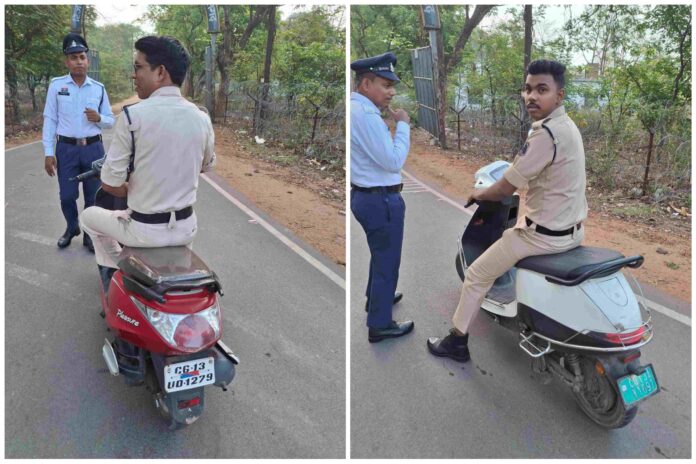 कानून तोड़ा, और कानून ने नहीं छोड़ा: रायगढ़ में 10 पुलिसकर्मियों को बिना हेलमेट बाइक चलाना पड़ा महंगा, ट्रैफिक पुलिस ने काटा चालान…