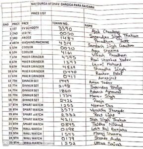 इस अवसर पर नवरात्र पर्व के दौरान आयोजित लक्की ड्रा योजना के परिणामों की घोषणा की गई, जो इस वर्ष के आयोजन का मुख्य आकर्षण रहा।