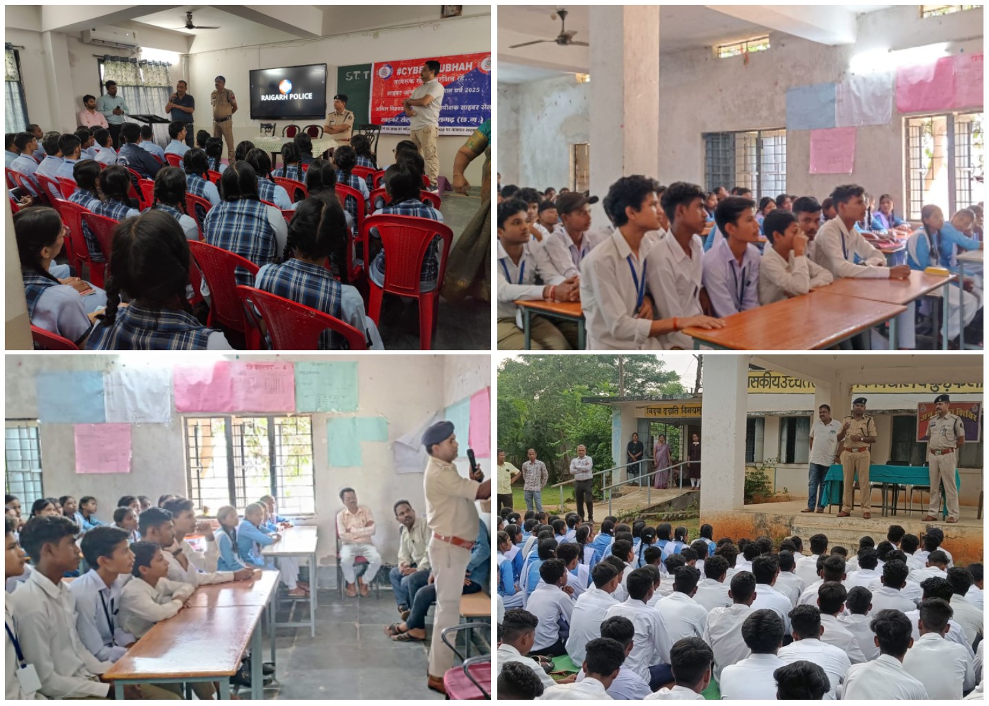रायगढ़ : पुलिस अधीक्षक दिव्यांग कुमार पटेल के दिशा-निर्देशन एवं अतिरिक्त पुलिस अधीक्षक आकाश मरकाम तथा उप पुलिस अधीक्षक साइबर सेल अनिल विश्वकर्मा के मार्गदर्शन में जिले में *साइबर जागरूकता अभियान 2025* के तहत विशेष कार्यक्रम आयोजित किए जा रहे हैं। इसी कड़ी में आज का दिन बेहद खास रहा, जब एक ही दिन में पांच अलग-अलग स्थानों पर कुल 1055 स्कूली बच्चों और वार्डवासियों को साइबर अपराध और उससे बचाव के उपायों के साथ-साथ अन्य महत्वपूर्ण कानूनी विषयों पर जागरूक किया गया।