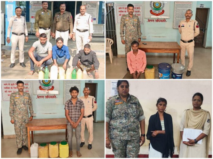 रायगढ़ । वरिष्ठ पुलिस अधीक्षक शशि मोहन सिंह के दिशा निर्देशन पर होली पर्व के मद्देनजर जिले में “ऑपरेशन आघात” के तहत अवैध शराब के विरुद्ध विशेष अभियान चलाया जा रहा है। इसी क्रम में पिछले 48 घंटों के भीतर थाना खरसिया में 03, थाना घरघोड़ा में 03, थाना लैलूंगा में 02, थाना भूपदेवपुर में 02 तथा थाना धरमजयगढ़ में 01 बड़ी कार्रवाई करते हुए कुल 11 प्रकरण दर्ज किए गए। इन कार्रवाइयों में कुल 204 लीटर अवैध महुआ शराब, जिसकी अनुमानित कीमत लगभग ₹29,050 है, जब्त की गई तथा 11 आरोपियों के विरुद्ध धारा 34(2), 59(क) आबकारी एक्ट के तहत कार्रवाई कर गिरफ्तार कर न्यायिक रिमांड पर भेजा गया।