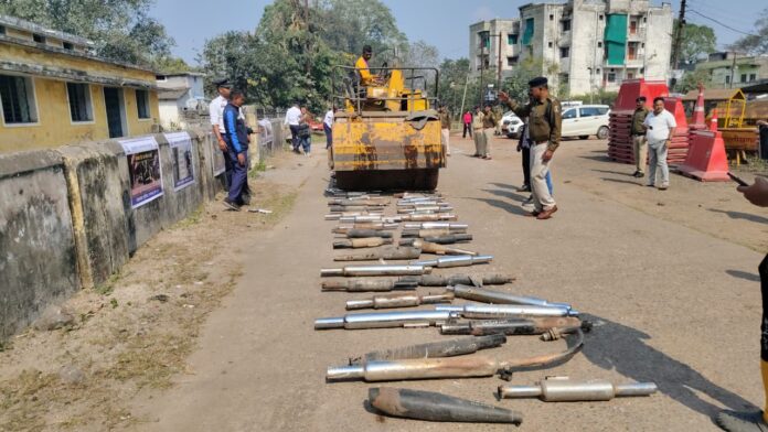 रायगढ़। रायगढ़ पुलिस अधीक्षक दिव्यांग पटेल के दिशा-निर्देशन पर शहर में यातायात नियमों के अनुपालन को लेकर चल रही सख्त मुहिम के बीच शुक्रवार को यातायात पुलिस ने मॉडिफाई साइलेंसरों पर की गई कार्रवाई का नष्टीकरण कार्यक्रम आयोजित किया। गत माह एडिशनल एसपी आकाश मरकाम और डीएसपी ट्रैफिक उत्तम प्रताप सिंह के मार्गदर्शन में विभिन्न क्षेत्रों में अभियान चलाकर उन बाइक चालकों पर चालानी कार्रवाई की गई थी, जिन्होंने मानक साइलेंसर हटाकर तेज और कर्कश ध्वनि वाले मॉडिफाई साइलेंसर लगाकर वाहन चलाए। नियम उल्लंघन करने वालों से समन शुल्क वसूलते हुए उनके वाहनों में लगे गैर-मानक साइलेंसर हटवाकर पुनः मानक साइलेंसर लगवाए गए थे। इसी कार्रवाई में जब्त किए गए करीब 200 मॉडिफाई साइलेंसरों को आज पुलिस सामुदायिक भवन के सामने सीसी रोड पर पुलिस अधीक्षक श्री दिव्यांग पटेल की मौजूदगी में रोड़ रोलर चलवाकर नष्ट किया गया।