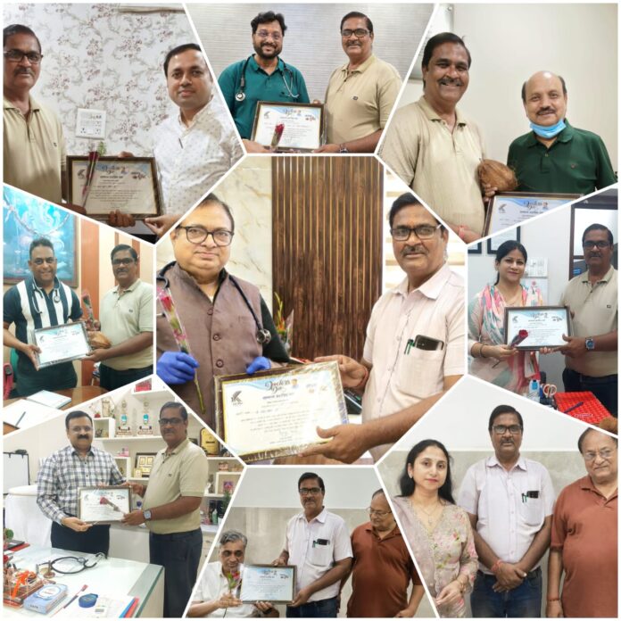 इस साल डॉक्टर्स-डे पर हमारी संस्था की ओर से चिकित्सकों के क्लीनिकों में जाकर उनका सम्मान किया। शहर सहित पूरे अंचल में अपनी निस्वार्थ सेवा के प्रसिद्ध सीनियर डॉ रूपेंद्र पटेल, डॉ आर एल अग्रवाल, डॉ राजू अग्रवाल, डॉ अजय गुप्ता, डॉ अरुण केडिया, डॉ राहुल अग्रवाल, डॉ पवन अग्रवाल, डॉ मनीष बेरीवाल, डॉ प्रिया अग्रवाल, डॉ खुशबू अग्रवाल, डॉ नमिता पटेल, डॉ विकाश अग्रवाल, डॉ प्रकाश चेतावनी, डॉ स्नेहा चेतावनी, डॉ वाय के शिंदे, डॉ आनंद शर्मा समेत 25 डॉक्टरों को पुष्पगुच्छ व प्रशस्ति भेंट किया और उनकी चिकित्सकीय सेवा का सम्मान करते हुए आभार जताया।