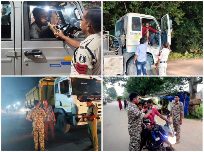 रायगढ़ । एसपी दिव्यांग कुमार पटेल के दिशा निर्देशन एवं एडिशनल एसपी आकाश मरकाम, डीएसपी ट्रैफिक उत्तम प्रताप सिंह के मार्गदर्शन में कल दिनांक 14 अक्टूबर 2025 को जिले के सभी थाना क्षेत्रों में शराब पीकर वाहन चलाने वालों के विरुद्ध विशेष अभियान चलाया गया। अभियान के दौरान विभिन्न थानाक्षेत्रों में कुल 37 व्यक्तियों के विरुद्ध मोटर व्हीकल एक्ट की धारा 185 के तहत कार्रवाई की गई। इनमें कोतरारोड पुलिस ने सर्वाधिक 7 वाहन चालकों को पकड़ा है। सभी के विरुद्ध इस्तगाशा तैयार कर न्यायालय में पेश किए जाने की कार्यवाही की जा रही है।