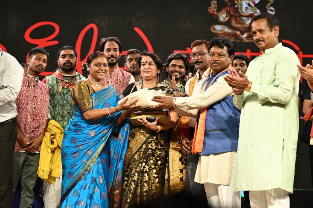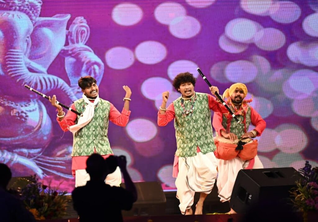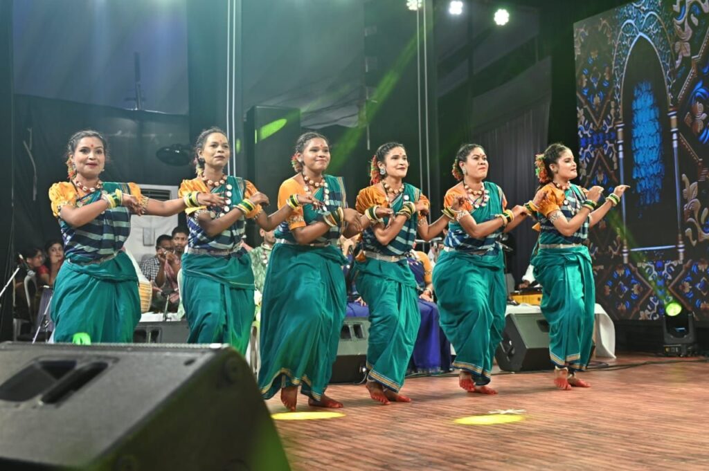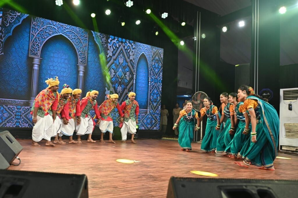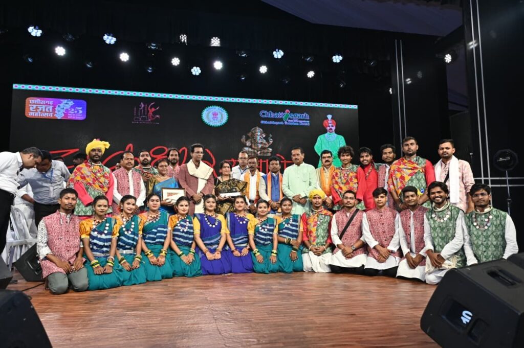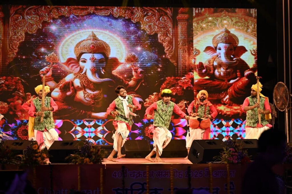 रायगढ़/ 40वे चक्रधर समारोह के चौथे दिन आज इंदिरा कला एवं संगीत विश्वविद्यालय खैरागढ़ के छात्रों द्वारा छत्तीसगढ़ी संस्कृति पर आधारित विविध छत्तीसगढ़ी लोक नृत्य की मन को छूने और झुमाने वाली आकर्षक प्रस्तुति दी। उन्होंने सबसे पहले गणपति जगवंदन और गजानन स्वामी के जयकारे से अपने प्रस्तुति की शुरुआत की। कार्यक्रम स्थल पर दूर-दूर से पहुंचे सभी दर्शकों को आज कत्थक, भरतनाट्यम, ओडिसी, तबला, संतूर, सितार, भजन, गजल जैसे विभिन्न शास्त्रीय कलाओं के साथ साथ छत्तीसगढ़ के कलसा, ठीसकी चटकोला, रैला-रीना और करमा लोकनृत्य के रंगो में भी डूबने का अवसर मिला। छात्रों ने सिर पर कलश रखकर अद्भुत कलसा नृत्य का प्रदर्शन किया। जिसने छत्तीसगढ़ की लोक आस्था, पारंपरिक जीवन शैली और कलात्मक कौशल को बखूबी दर्शाया। जिससे पूरा चक्रधर समारोह छत्तीसगढ़ी लोक संस्कृति से सराबोर हो गया।