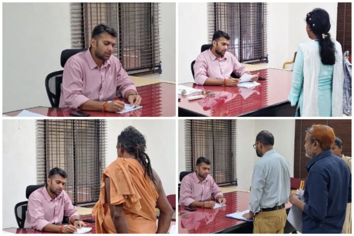 रायगढ़। कलेक्टर मयंक चतुर्वेदी ने आज जिला कलेक्टोरेट में आयोजित साप्ताहिक जनदर्शन में जिले के विभिन्न क्षेत्रों से पहुंचे आमजनों की समस्याएं, मांगें और शिकायतें गंभीरता से सुनीं। उन्होंने संबंधित अधिकारियों को प्रत्येक आवेदनों का नियमानुसार और संवेदनशीलता के साथ त्वरित एवं गुणवत्तापूर्ण निराकरण सुनिश्चित करने के निर्देश दिए। जनदर्शन में घरघोड़ा तहसील के ग्राम बुलेकेरा निवासी मनबंधू दास ने बताया कि उनके पुत्र गोविंद दास का प्रवेश डिग्री कॉलेज रायगढ़ में हो गया है, किंतु रहने की व्यवस्था नहीं है। साथ ही गोविंद एक आंख से दिव्यांग हैं। इस पर कलेक्टर ने तत्काल आदिवासी विकास विभाग के सहायक आयुक्त को निर्देशित किया कि गोविंद दास को छात्रावास में प्रवेश दिलाने हेतु आवश्यक कार्यवाही शीघ्र पूरी की जाए। छत्तीसगढ़ कामगार सिविल एवं पेंटिंग मजदूर संघ ने रायगढ़ नगर के नया शनि मंदिर श्रमिक चौक में प्रतिदिन रोजगार के लिए एकत्र होने वाले सैकड़ों श्रमिकों की सुविधा हेतु स्थाई प्रतीक्षालय, पेयजल व शौचालय की व्यवस्था की मांग की, जिस पर कलेक्टर ने संबंधित अधिकारी को आवश्यक कार्यवाही के निर्देश दिए।