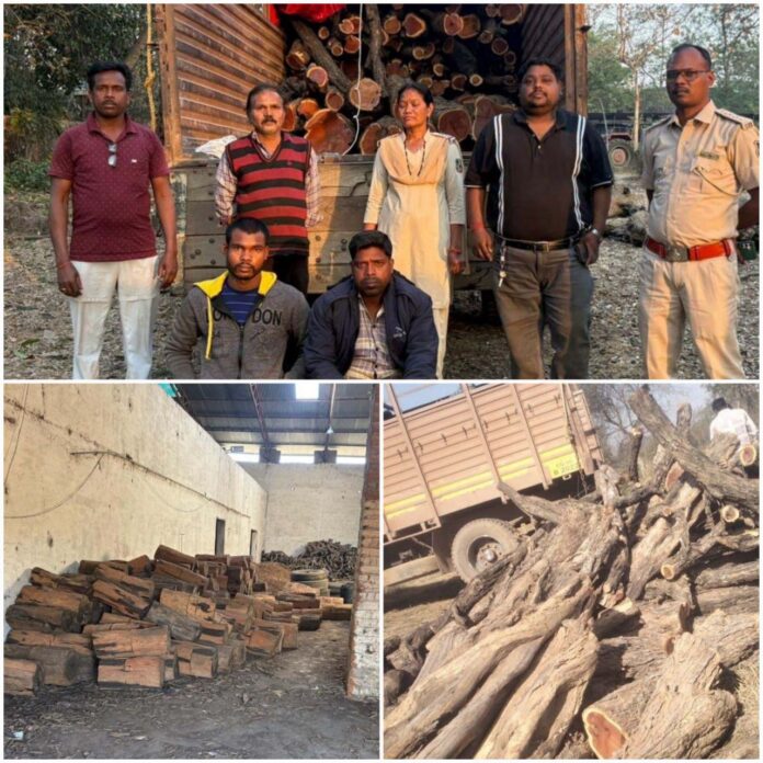 रायगढ़ / जिला प्रशासन के निर्देश पर रायगढ़ वन विभाग ने खैर लकड़ी की तस्करी के खिलाफ बड़ी कार्रवाई करते हुए एक अंतर्राज्यीय गिरोह का भंडाफोड़ किया है। 16 फरवरी को मुखबिर से मिली पुख्ता सूचना के बाद रायगढ़ वन मंडलाधिकारी के मार्गदर्शन पर उप वनमण्डलाधिकारी और उड़नदस्ते की टीम ने दबिश दी, तस्करों में हड़कंप मच गया और वे लकड़ी से लदा ट्रक लेकर भागने लगे। वन विभाग की सतर्कता के चलते चंद्रपुर मार्ग पर घेराबंदी कर ट्रक क्रमांक सीजी-06 2022 को पकड़ लिया गया। गिरोह के सदस्यों की मदद से चालक एक बार फरार होने में सफल रहा, लेकिन बाद में छानबीन के दौरान उसे गिरफ्तार कर लिया गया।