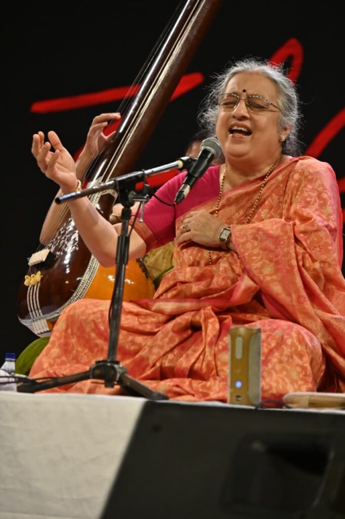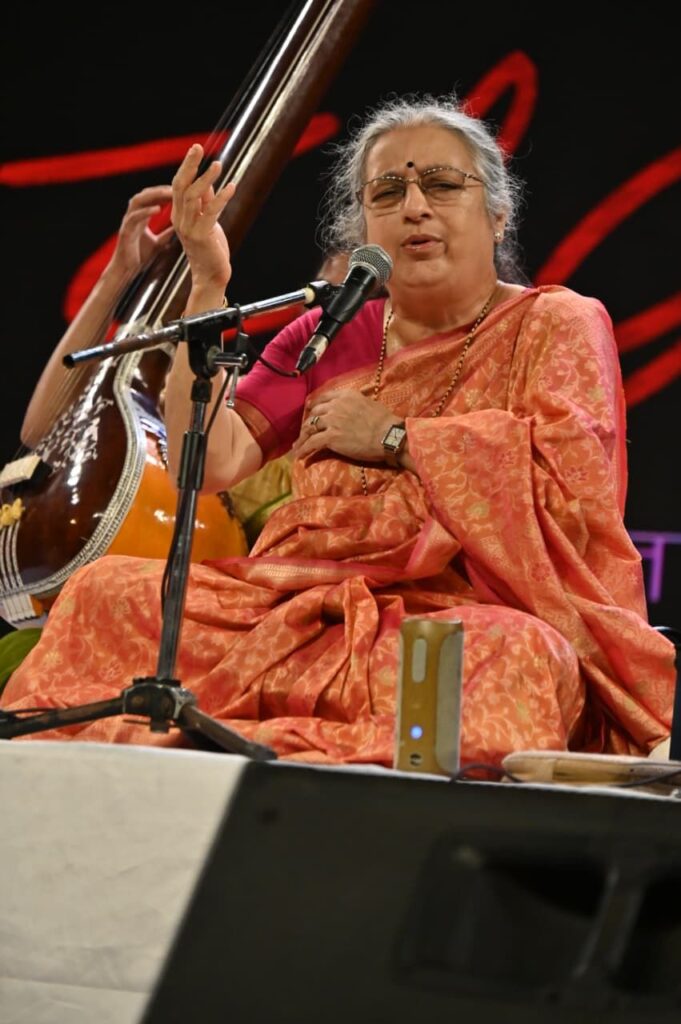 रायगढ़/ अंतरराष्ट्रीय ख्याति प्राप्त चक्रधर समारोह के मंच पर मुंबई की सुप्रसिद्ध शास्त्रीय गायिका एवं पद्मश्री से सम्मानित डॉ.अश्विनी भिडे देशपाण्डे ने अपनी सुमधुर प्रस्तुति से श्रोताओं को मंत्रमुग्ध कर दिया। जयपुर अतरौली घराने की प्रतिनिधि डॉ.देशपाण्डे ने शास्त्रीय गायन की विविध विधाओं खयाल, भजन और ठुमरी प्रस्तुत कर सुर, ताल और भाव का ऐसा संगम रचा कि दर्शक भावविभोर हो उठे।