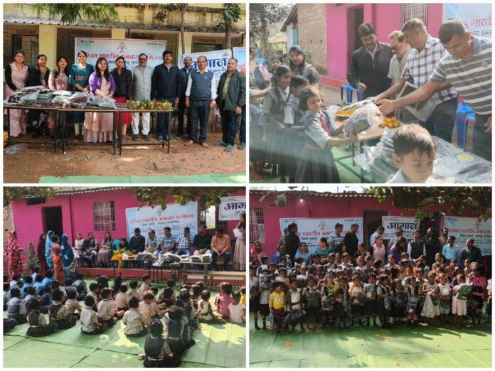 रायगढ़। गर्म कपड़े वितरण पखवाड़ा के तहत अखिल भारतीय अग्रवाल सम्मेलन, जिला इकाई रायगढ़ द्वारा मंगलवार को शहर एवं ग्रामीण क्षेत्र के विभिन्न विद्यालयों में स्वेटर वितरण कार्यक्रम आयोजित किया गया। इस पहल का उद्देश्य शीतलहर के प्रभाव से विद्यार्थियों को सुरक्षित रखना तथा आर्थिक रूप से कमजोर वर्ग के बच्चों को राहत प्रदान करना था।