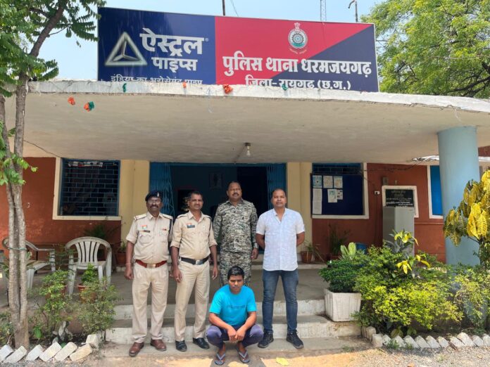 रायगढ़। एसपी दिव्यांग पटेल के दिशा-निर्देशन एवं एसडीओपी धरमजयगढ़ सिद्धांत तिवारी के सतत मार्गदर्शन में धरमजयगढ़ पुलिस द्वारा फरार आरोपियों की गिरफ्तारी के लिए विशेष अभियान चलाया जा रहा है, अभियान के तहत धरमजयगढ़ पुलिस ने ग्राम खलबोरा की महिलाओं से करीब 17 लाख रुपये की ठगी कर फरार चल रहे आरोपी धनसिंह अगरिया को गिरफ्तार करने में बड़ी सफलता हासिल की है। शनिवार 3 मई को टीआई कमला पुसाम और उनकी टीम ने पत्थलगांव स्थित उसके ससुराल पालीडीह में दबिश देकर आरोपी को गिरफ्तार कर न्यायिक रिमांड पर भेजा।